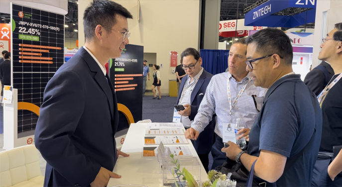 本屆美國展,陽光能源帶來的3款Giga系列組件產(chǎn)品,涵蓋72片雙玻、78片雙玻和54片單玻全黑組件,均采用182mm電池片設(shè)計。其中,我司展出的Giga-N系列72片雙玻組件吸引了不少現(xiàn)場觀眾的駐足了解。該款組件采用了行業(yè)領(lǐng)先的N型TOPCon電池技術(shù),最高量產(chǎn)轉(zhuǎn)換效率達(dá)22.45%,兼具高發(fā)電量、高雙面率、低溫度系數(shù)、低光衰率等多重優(yōu)勢,首年功率衰減≤1%,能夠有效保障終端用戶收益。同時,本次展出的3款Giga系列產(chǎn)品具備優(yōu)異的抗PID性能,且通過5-10倍IEC標(biāo)準(zhǔn)檢測,對于極限環(huán)境的耐受力更強(qiáng),能夠滿足北美市場大型地面電站、高端戶用等全場景需求。