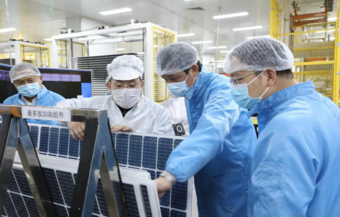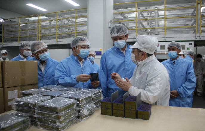 上午10時(shí)30分,市領(lǐng)導(dǎo)來到我錦州陽光能源有限公司全資子公司錦州創(chuàng)惠新能源有限公司,走進(jìn)生產(chǎn)車間現(xiàn)場(chǎng)了解企業(yè)年產(chǎn)1GW高效太陽能組件數(shù)字化車間項(xiàng)目相關(guān)情況。我公司總經(jīng)理張海陪同市領(lǐng)導(dǎo)一行,張總介紹:該項(xiàng)目達(dá)產(chǎn)后,可實(shí)現(xiàn)15億元的銷售收入,并作為東北地區(qū)領(lǐng)先智能工廠帶動(dòng)同行業(yè),完成再生能源布局優(yōu)化和提質(zhì)增效,加快推動(dòng)企業(yè)向清潔低碳模式轉(zhuǎn)變。