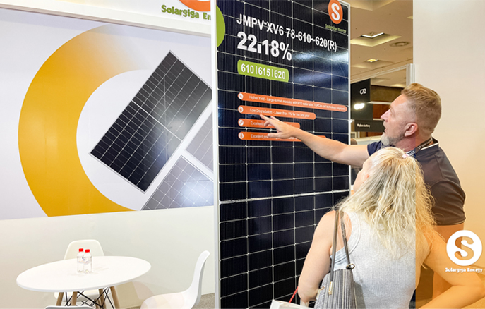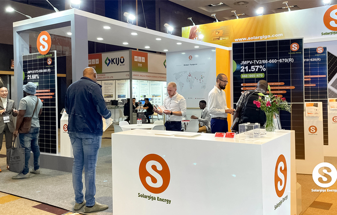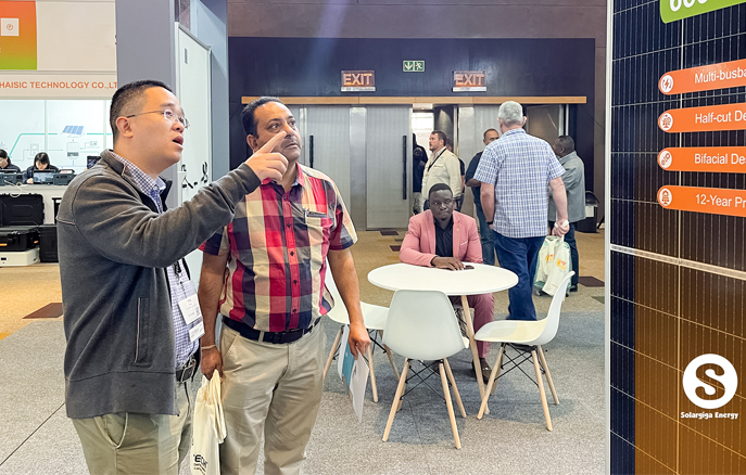 作為全球知名光伏組件制造商,陽(yáng)光能源在本次大會(huì)上向來(lái)自全球的業(yè)界翹楚展示了我司的先進(jìn)技術(shù)和創(chuàng)新產(chǎn)品。陽(yáng)光能源3款Giga-P系列組件面向當(dāng)?shù)卮笮偷孛骐娬镜葢?yīng)用場(chǎng)景,量產(chǎn)功率最高可達(dá)670W;此外,陽(yáng)光能源還展示了1款 Giga-N系列78片雙玻組件產(chǎn)品,以更高效、更前沿的組件特性,俘獲大批觀眾駐足欣賞。展會(huì)現(xiàn)場(chǎng),陽(yáng)光能源還與當(dāng)?shù)鼗锇楣餐接懥四戏枪夥a(chǎn)業(yè)發(fā)展新機(jī)遇。