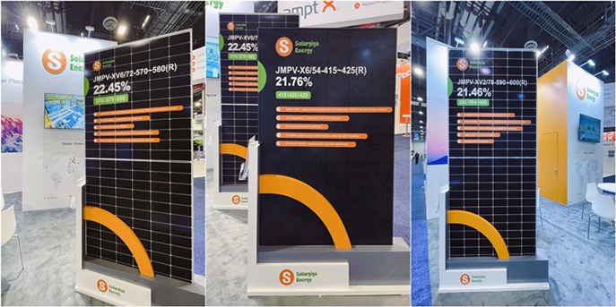 本屆美國展,陽光能源帶來的3款Giga系列組件產(chǎn)品,涵蓋72片雙玻、78片雙玻和54片單玻全黑組件,均采用182mm電池片設(shè)計。其中,我司展出的Giga-N系列72片雙玻組件吸引了不少現(xiàn)場觀眾的駐足了解。該款組件采用了行業(yè)領(lǐng)先的N型TOPCon電池技術(shù),最高量產(chǎn)轉(zhuǎn)換效率達(dá)22.45%,兼具高發(fā)電量、高雙面率、低溫度系數(shù)、低光衰率等多重優(yōu)勢,首年功率衰減≤1%,能夠有效保障終端用戶收益。同時,本次展出的3款Giga系列產(chǎn)品具備優(yōu)異的抗PID性能,且通過5-10倍IEC標(biāo)準(zhǔn)檢測,對于極限環(huán)境的耐受力更強(qiáng),能夠滿足北美市場大型地面電站、高端戶用等全場景需求。