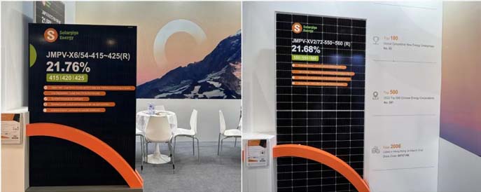 本屆香港展會(huì),陽光能源展出了兩款高效率、高發(fā)電量的Giga系列產(chǎn)品,分別是182 N型TOPCon 54片單玻組件和182 P型PERC 72片雙玻組件。其中,182 N型TOPCon 54片單玻組件采用全黑設(shè)計(jì),量產(chǎn)效率可達(dá)到21.76%,兼具美觀和優(yōu)異的發(fā)電性能,被普遍應(yīng)用于高端住宅等應(yīng)用場景,獲得眾多現(xiàn)場觀眾的駐足了解。