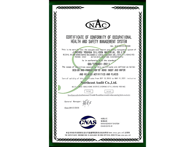 職業(yè)健康安全管理體系認證證書(英文)