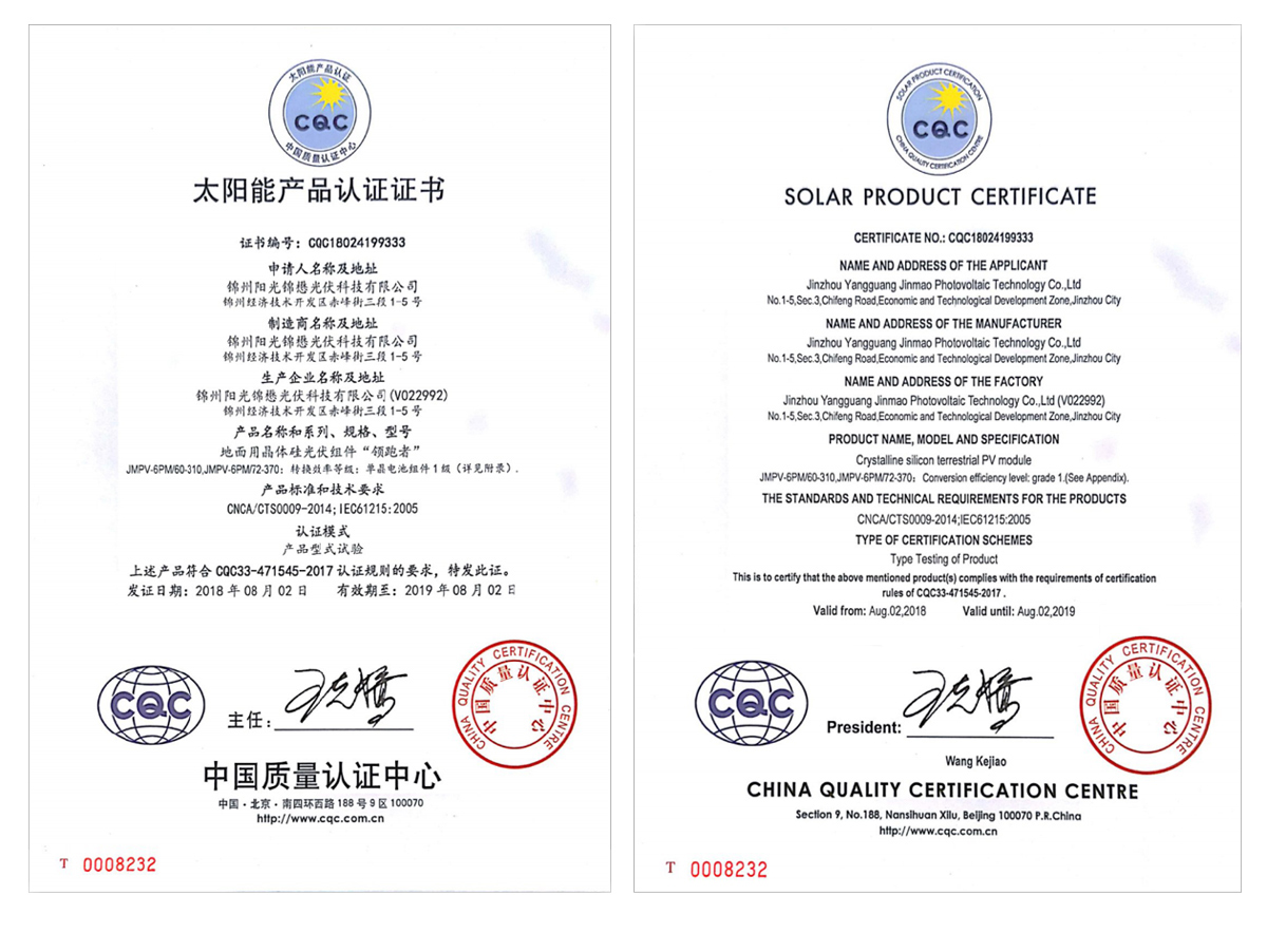 雙玻單晶組件CQC-1